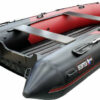 Надувная лодка Хантер 420 ПРО со стационарным вклеенным умеренно-килевым дном низкого давления (НДНД) рассчитана на использование с мотором до 30 л.с. с максимальной загрузкой до 950 кг. Предназначена для рыбалки, охоты и активного отдыха на воде небольшой компанией. Выпускается в комбинированном красно/черном цвете.